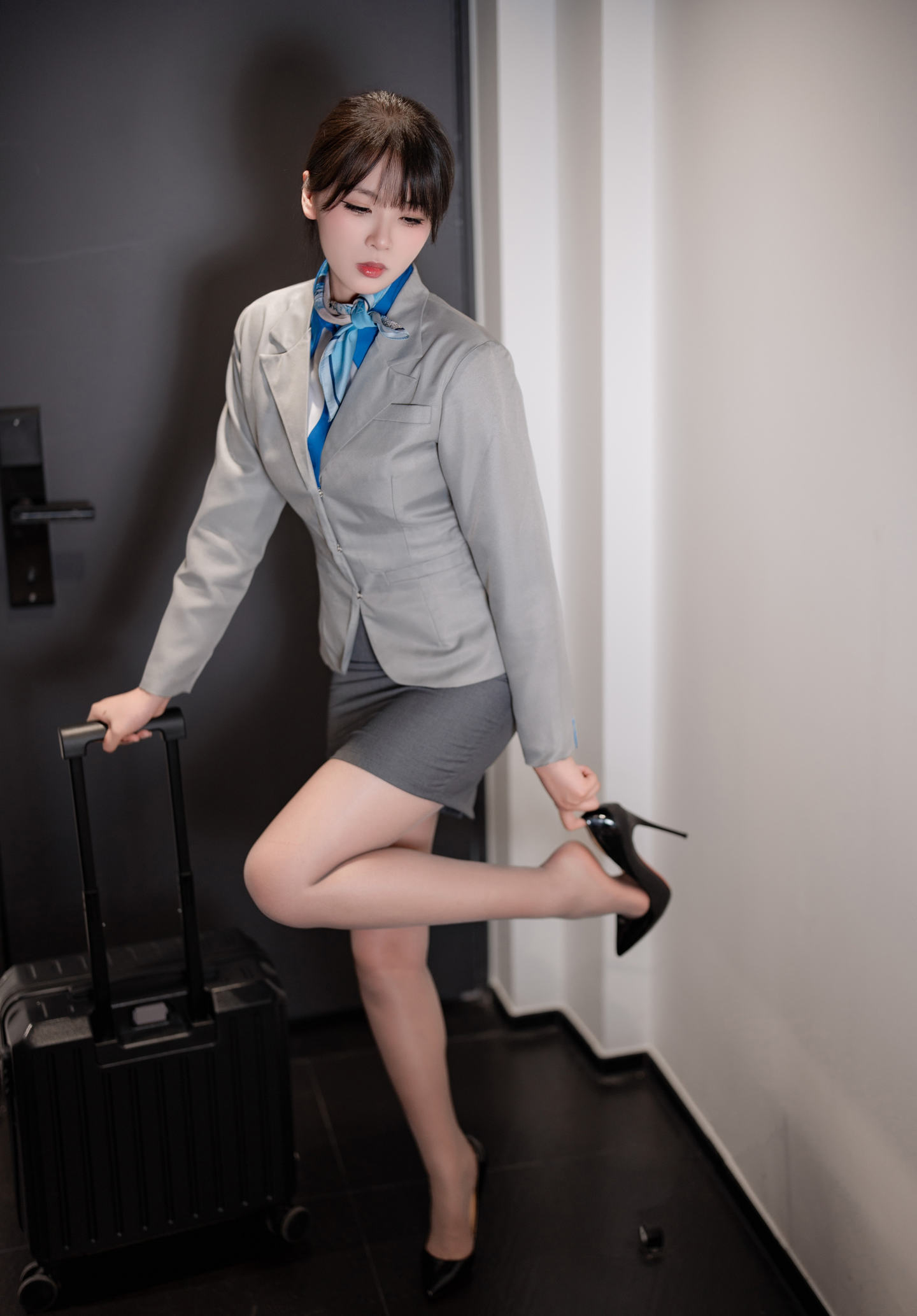 轩萧学姐 NO.088 生日作 空姐黑丝+灰丝[140P-2V]